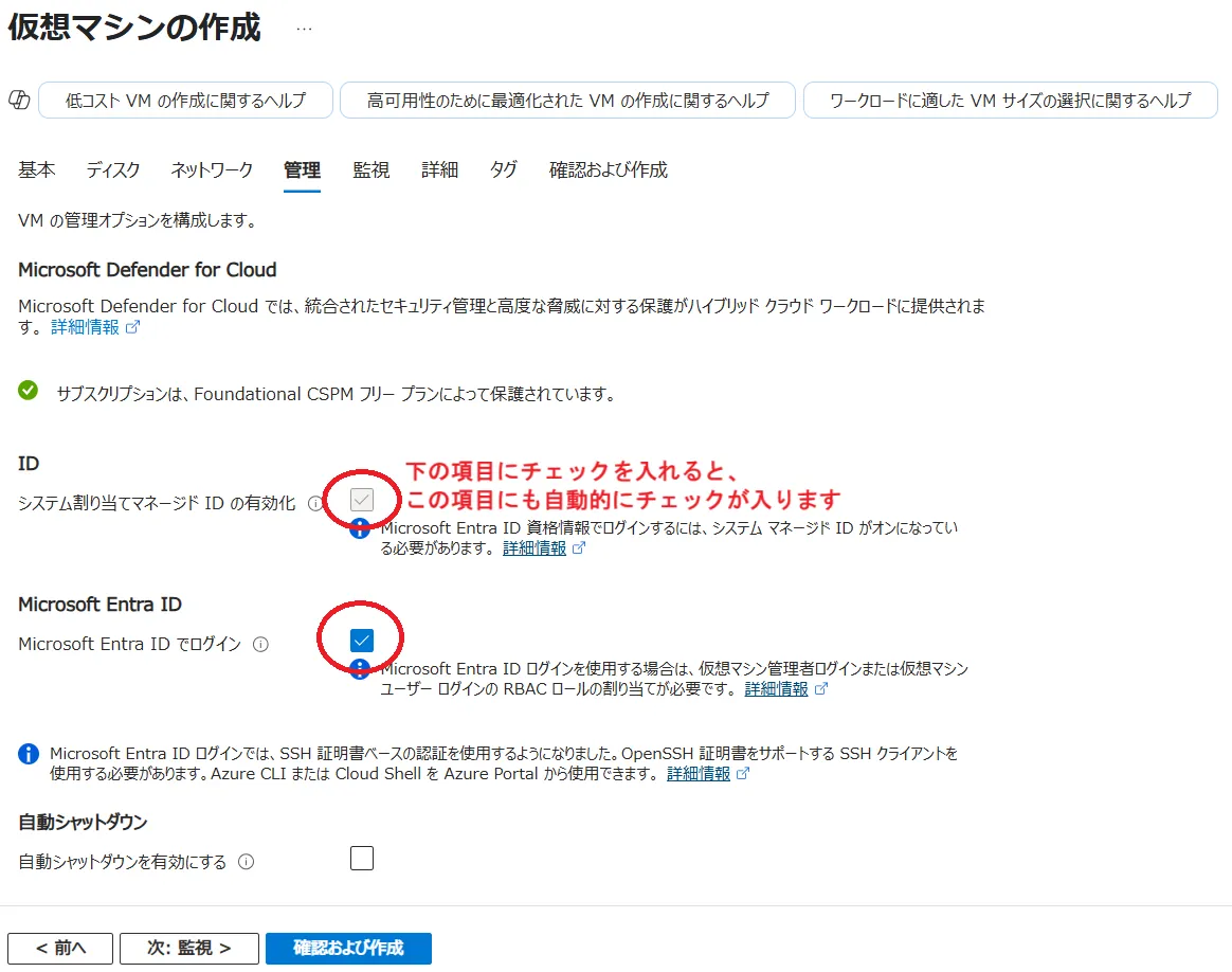 Virtual Machines : UTokyo Azure 利用例とほぼ同じ手順で仮想マシンを作成します.一か所だけ,管理パートでMicrosoft Entra ID でログインにチェックを入れる必要がありますので,忘れずにチェックを入れてください.