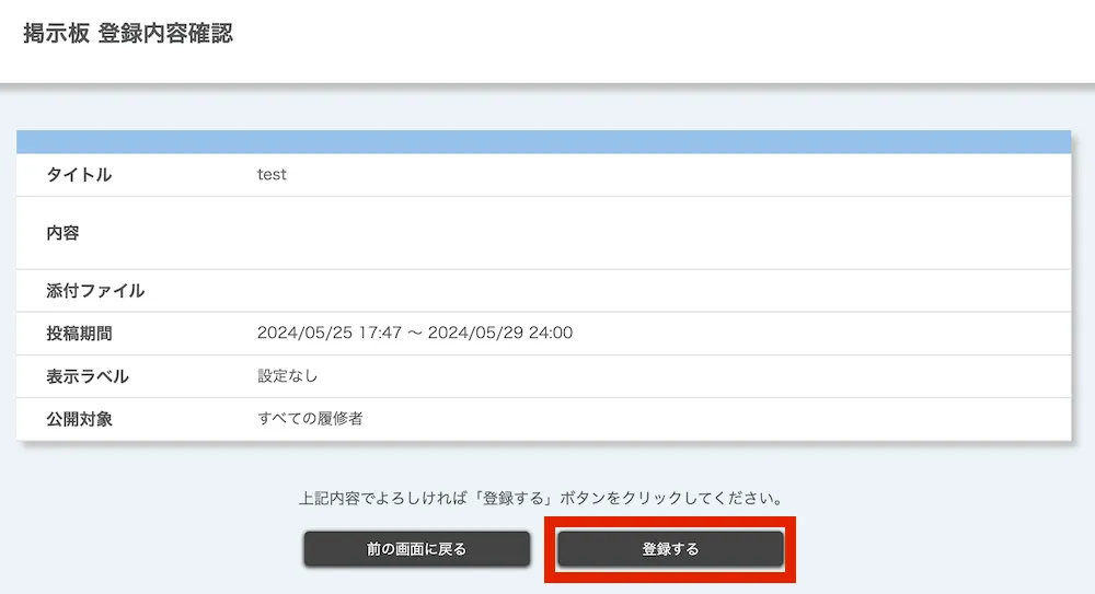 - 内容を確認した上で,「登録する」を押してください.